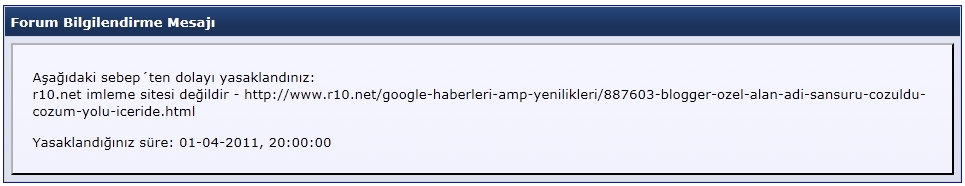 Çözümü link olarak R10 forumlarında paylaştığım için imleme suçlamasıyla ilk defa banlandım.